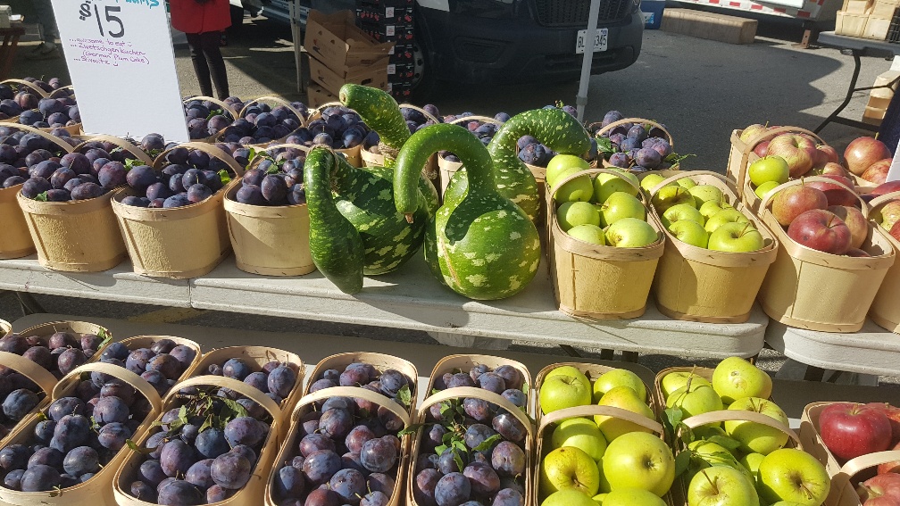 Produce Published September 27, 2022 at 1008 × 567 in Produce Swan Shaped Gourds and other produce at the St Jacobs Markets